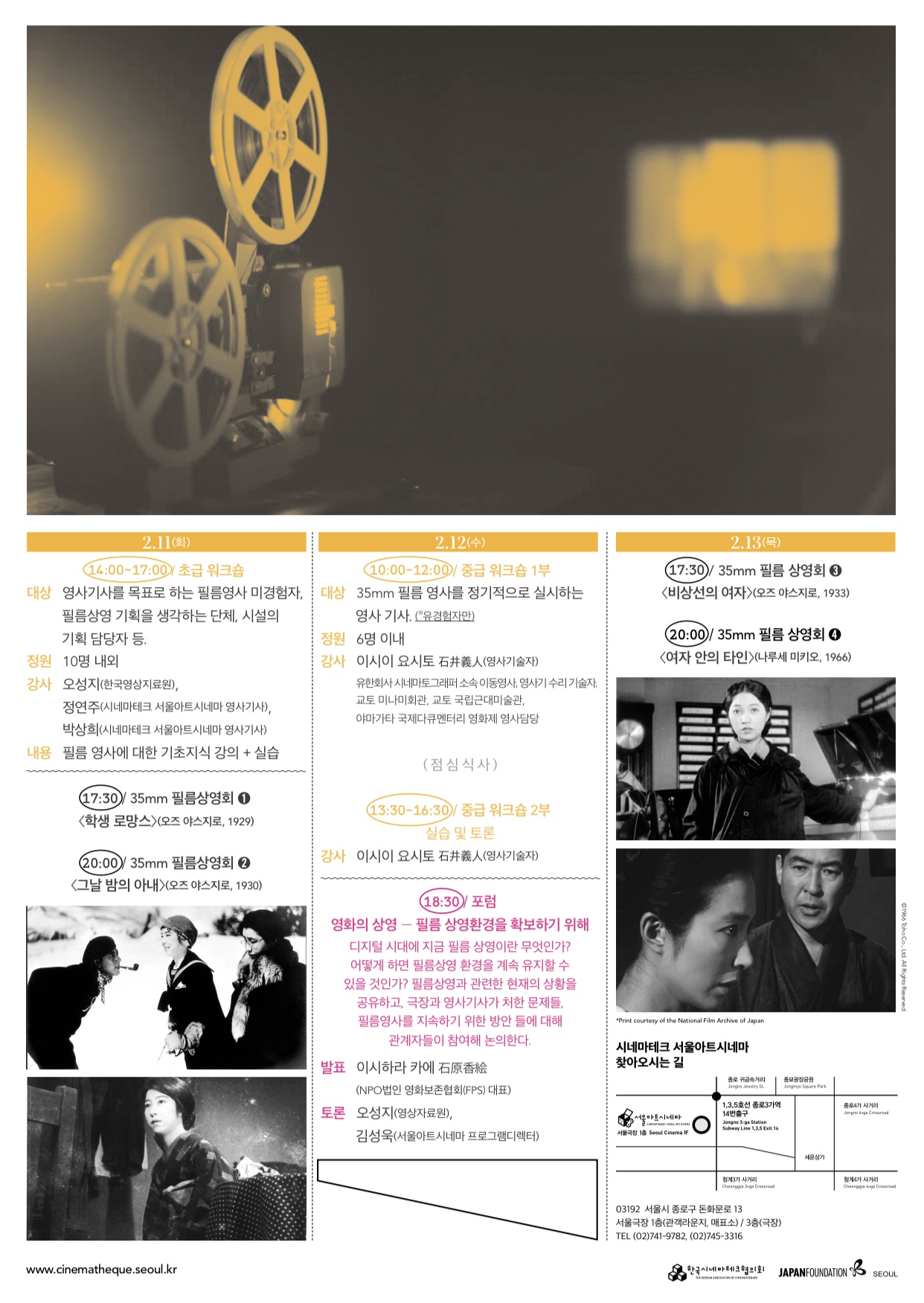 -강사 오성지(한국영상자료원), 정연주(서울아트시네마 영사기사), 박상희(서울아트시네마 영사기사)