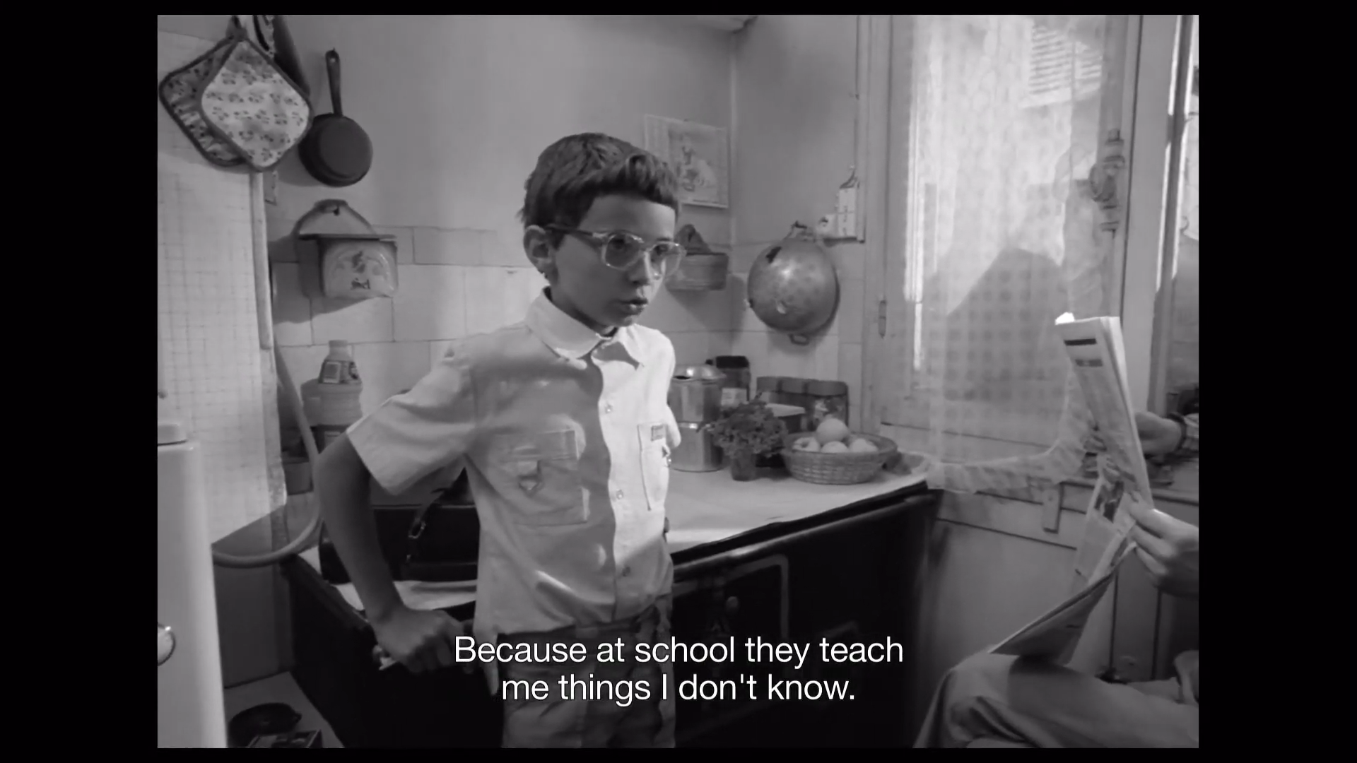 "나는 더 이상 학교에 가지 않을 거예요. 왜냐하면, 학교에서는 내가 모르는 것들을 가르치기 때문이예요." 파노라믹 쇼트로 가정집 내부가 보이면-이 쇼트는 마지막에도 강조된다- 아홉 살 소년 에르네스토가 부모에게 이렇게 선언한다. 아이는 '의무'라는 교육의 게임에 참여하지 않겠노라 결정한 것이다. 학교에 불려간 꼬마와 교장의 이어지는 철학적 논쟁들. 교장은 소년에게 묻는다. "그렇다면, 네가 아직 모르는 것을 어떻게 배울 수 있지?"