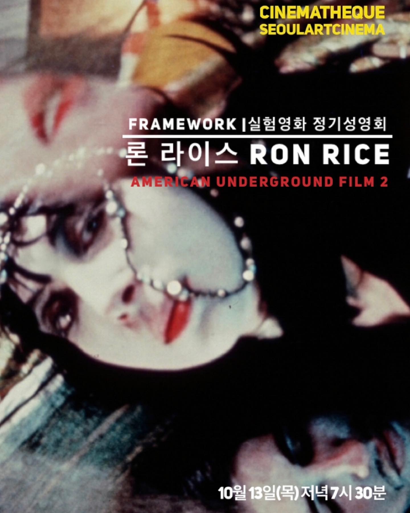 지난 9월 마리 멘켄에 이어 아메리칸 언더그라운드 필름의 역사를 살펴보는 10월 ‘실험영화 정기상영회’에서는 스물 아홉의 나이에 요절한 론 라이스가 남긴 3편의 영화를 상영합니다.