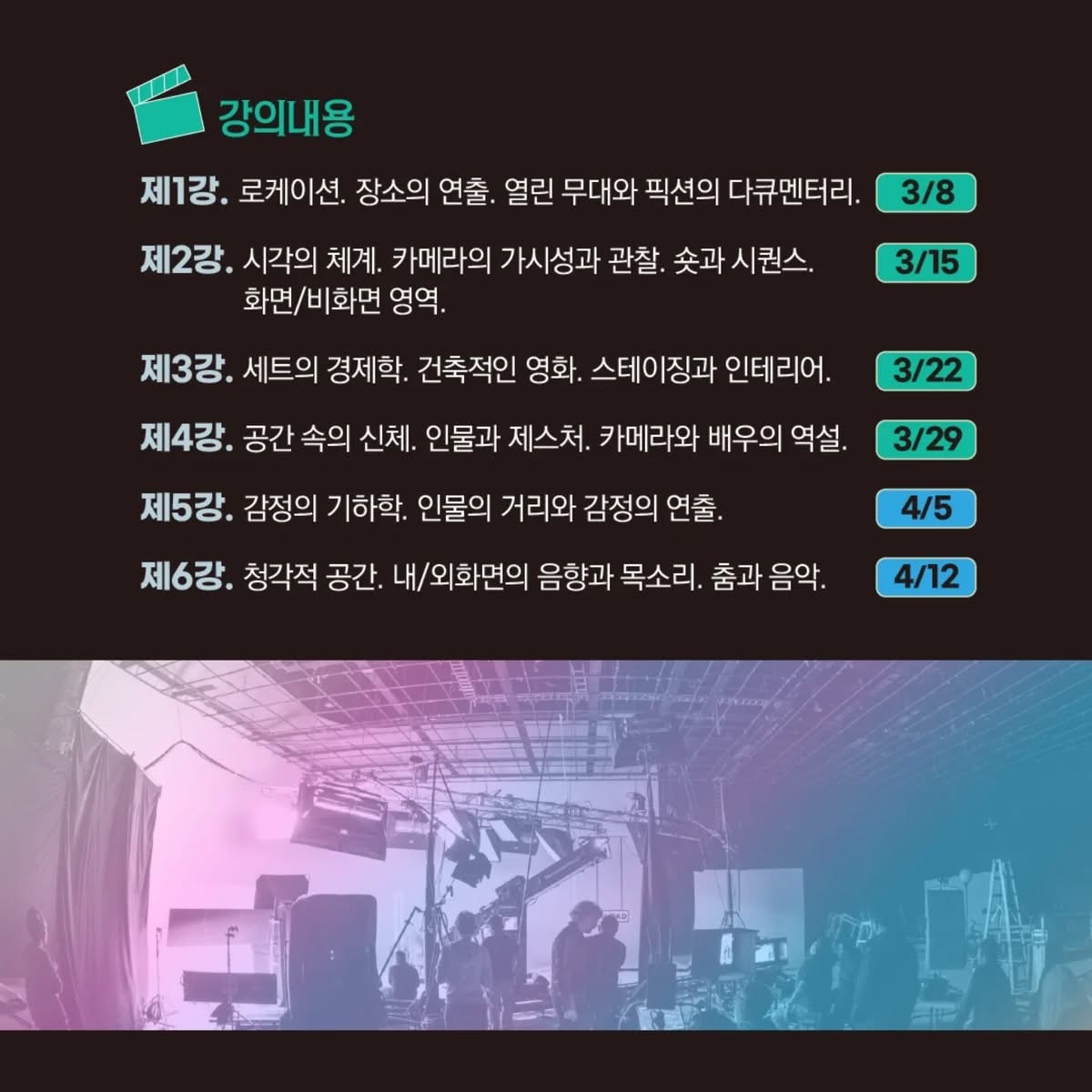 일시| 3월 8일부터. 매주 토요일. 오후 3시-5시(총 6강)