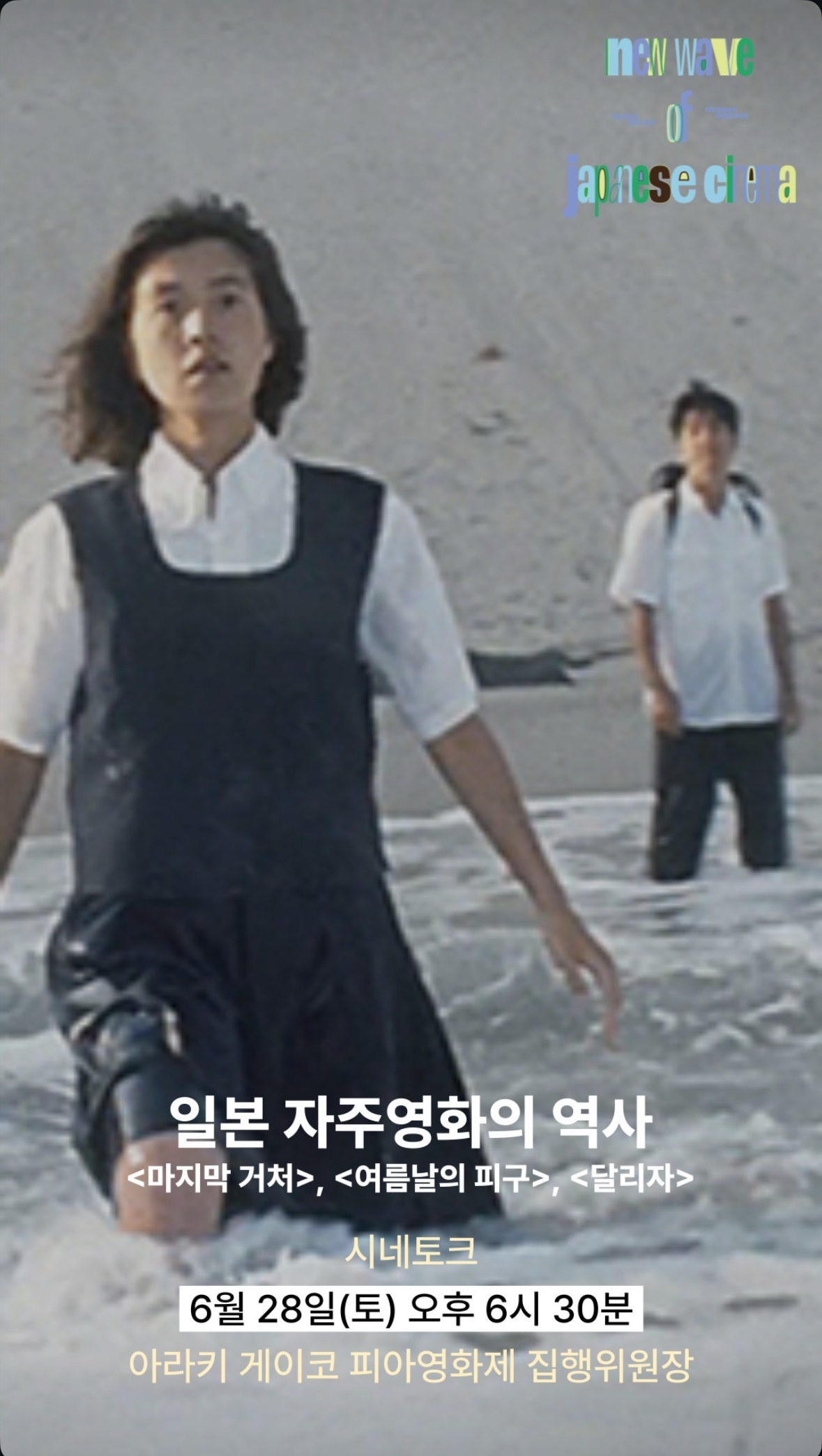절대적으로 추천하는 (아쉽지만) 단 한 번의 상영이다! 6월 28일, 영화 상영 후에는, 영화의 새로운 인재 발굴과 육성을 주제로 열리는 일본 ‘피아영화제’의 집행위원장인 아라키 게이코와 함께 일본 자주영화의 역사, 이번에 소개한 80-90년대 자주영화와, 현재 일본 자주영화의 현황에 대해 함께 이야기를 나눌 예정이다.